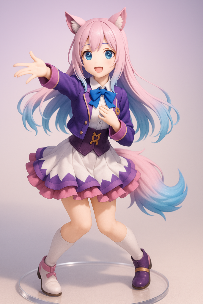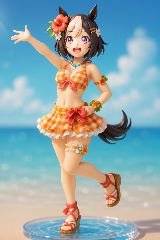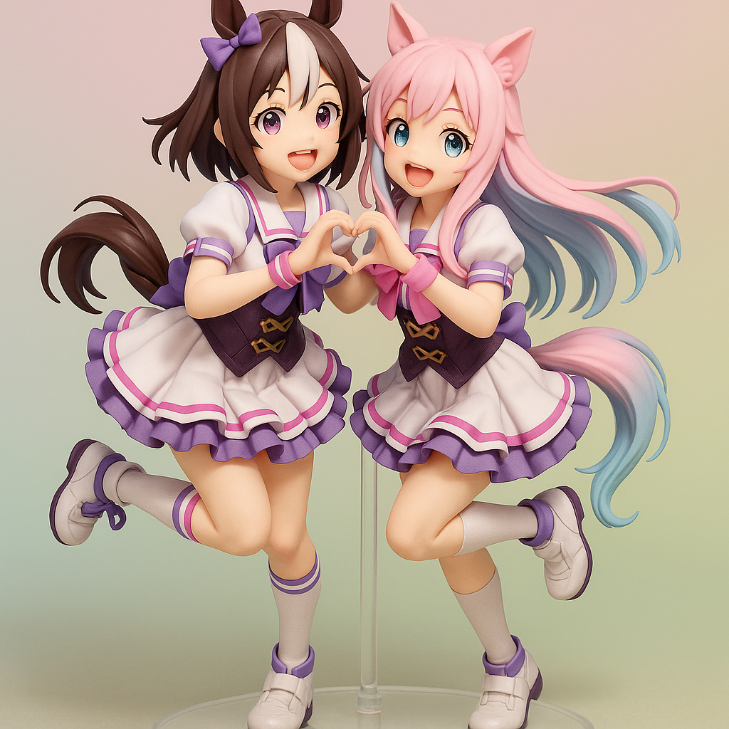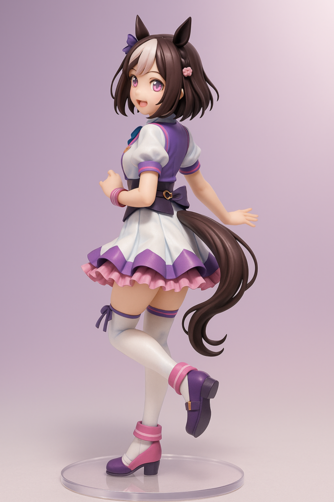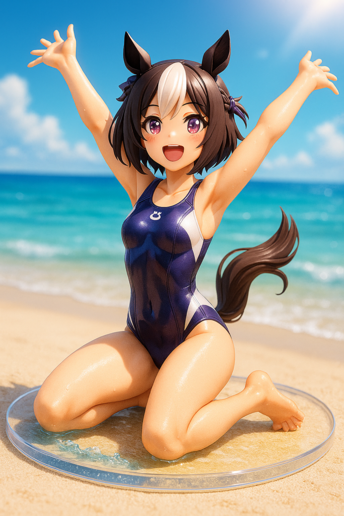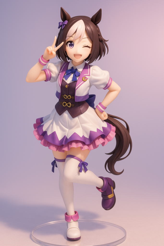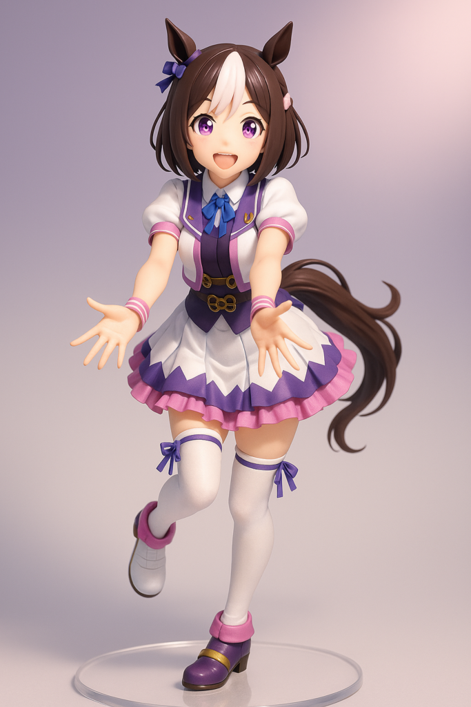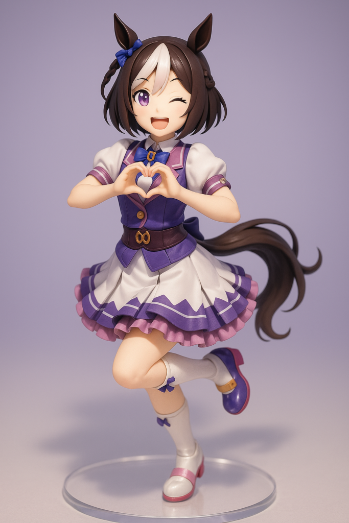 今回は『ウマ娘 プリティーダービー』のスペシャルウィークちゃんと一緒に、PVCフィギュア風アートを作ってみたよ!
