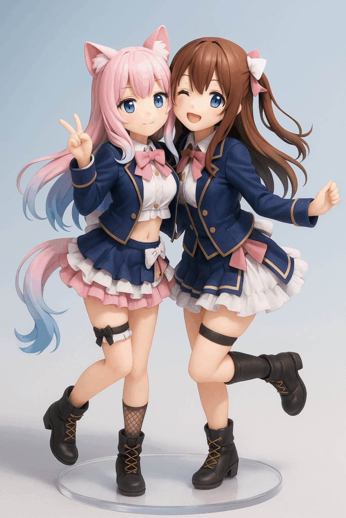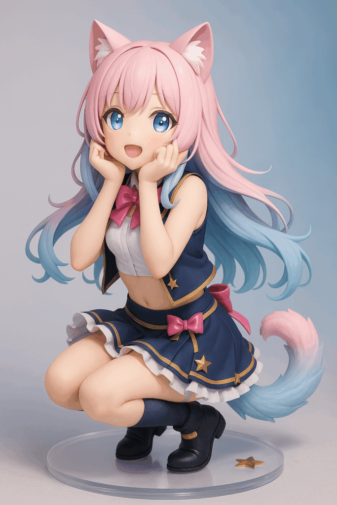 ホロライブ「ときのそら」とユムルが青背景で共演したフィギュア風アート✨